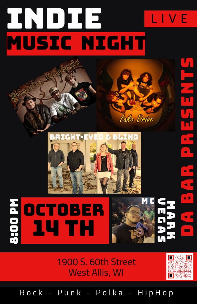 Upcoming Shows Saturday, Oct 14th 8:00pm – Indie Music Night @ Da Bar! Share this: Click to share on X (Opens in new window) X Click to share on Facebook (Opens in new window) Facebook Like Loading...